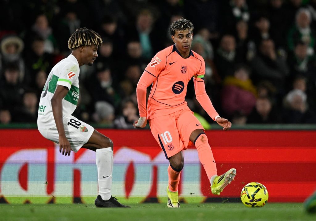 El Barcelona ha ganado 15 de los últimos 16 partidos. El duelo que perdió fue ante la Real Sociedad, en una noche en la que contabilizó hasta 26 remates, pero solo uno logró vencer a Álex Remiro (2-1). Frente al Elche, los muchachos de Hansi Flick volvieron a dominar el área: sumaron 30 remates. Y, como Iñaki Peña no pudo vestirse de héroe como sí lo había hecho Remiro en el Reale Arena, los azulgrana cantaron tres dianas. “Hemos jugado un partido fantástico, excepto en el último tercio. A los chicos los he felicitado por los tres puntos y por la actuación en general”, analizó el preparador alemán.Más informaciónEs curioso el ataque del Barcelona. Cuenta con seis jugadores en su plantilla que han marcado más de 10 goles en la temporada: Ferran Torres (16), Raphinha (13), Lamine Yamal (13), Lewandowski (12), Fermín (10) y Rashford (10). En las cinco grandes ligas no hay ningún equipo que tenga más de tres jugadores que hayan superado las 10 dianas. “Normalmente tenemos gente que finaliza muy bien. Estamos generando ocasiones”, razonó Frenkie de Jong. Eric García coincidió con el análisis del futbolista neerlandés: “Nadie falla a propósito. Cuando entramos al vestuario estábamos enfadados y contentos a la vez, porque podíamos haber tenido el partido más controlado. Hemos hecho una muy buena primera parte, parecida a la de la Real Sociedad. Si nos vamos 1-5 o 1-6 al descanso…”. “Pero”, matizó, “estamos contentos, aunque en eliminatorias de Champions deberíamos ser más efectivos”.Tan presente como poco efectivo en el área del Elche, el Barcelona jugó al ritmo de Frenkie de Jong —“Una masterclass”, elogió Flick al holandés—, pero sobre todo pendiente del desequilibrio de Lamine Yamal.El canterano azulgrana cuenta con 13 goles y 14 asistencias en la temporada. El sábado sumó una diana y un pase de gol más a su planilla. Lamine Yamal deja atrás la lesión en el pubis y su despertar reactiva al Barcelona. “Estoy contento con el rendimiento de Lamine Yamal en ataque y también en defensa”, destacó Flick. Y Alejandro Balde, uno de los grandes amigos del 10 en el vestuario, añadió: “Las expectativas con Lamine son muy altas. La gente olvida que tiene 18 años. Está haciendo una temporada increíble”.Lamine no conoce su techo; el Barcelona, según De Jong, tampoco. “Todavía no hemos alcanzado nuestro nivel máximo, creo. Pero seguimos jugando como un equipo, que es lo importante”, dijo el 21. Y Flick concluyó: “Queremos seguir jugando así; estamos confiados”.