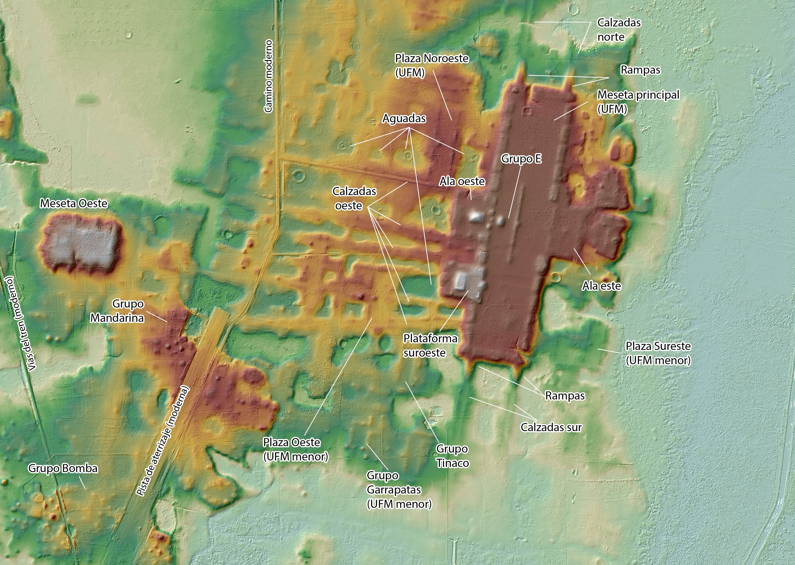 Hace unos años se descubrió en el sur de México una de las mayores construcciones de Mesoamérica y la mayor de la región maya. Se trata de una enorme plataforma levantada entre 10 y 15 metros del suelo, con 1.413 metros de norte a sur y 399 metros de este a oeste que debió funcionar como gran plaza. El descubrimiento fue posible gracias a la tecnología LIDAR, un láser que desentierra casi todo lo oculto. Ahora, en el centro de la estructura, han encontrado una representación del Universo tal y como lo concebían aquellas gentes de las que no se sabe si eran mayas o no. Además, al ampliar el foco del LIDAR, han hallado otro cosmograma aún más grande, cuyas terminaciones se alejan kilómetros del centro. Los autores del descubrimiento, cuyos detalles publica Science Advances, defienden también que, a diferencia de otros grandes monumentos, el de Aguada Fénix, lo levantaron cientos de personas de forma voluntaria.Aguada Fénix es especial, diferente, por muchas razones: Además de enorme, se trata de una serie de monumentos horizontales. Frente a la verticalidad de las pirámides, aquí manda una plataforma que debió ser como una gran plaza elevada. Junto al sitio de Ceibal está entre las construcciones más antiguas de la zona. La cerámica allí presente ha ayudado a ponerle fecha, su construcción debió iniciarse en torno al 1050 antes de esta era. Eso supone que levantaron la plaza central entre 800 y 1.000 años antes que las grandes ciudades mayas. Es tan antiguo que los autores de su descubrimiento se resisten a considerarlo un monumento maya, cuya civilización estaba emergiendo justo entonces.“Estando allí, sobre el terreno, en la actualidad no se ve. Puedes ver algunos montículos que sabes que los han hecho humanos, pero no identificas esta gran plataforma de forma rectangular que básicamente constituye un espacio abierto, una gran plaza”, explica Verónica Vázquez, arqueóloga del University College de Londres (Reino Unido) y coautora de la nueva investigación. “No es alta como una pirámide de Palenque o Tikal, es más una arquitectura masiva, monumental, pero horizontal, que se pierde en el paisaje”, añade Vázquez. En el centro de lo que hoy parece un cerro, LIDAR señaló dónde abrir la tierra. En el centro de la gran plataforma hay una formación en E. De ella destaca esta construcción con sucesivas plantas en cruz.Takeshi Inomata“En el centro de la plataforma tenemos un grupo arquitectónico que tiene otra plataforma alargada hacia el este y un montículo, como una pequeña pirámide de tierra, al oeste”, detalla la investigadora. Esta configuración la conocen entre los arqueólogos como grupo E y sirve “entre otras cosas, para observar el movimiento del sol en el horizonte, cuando te paras en el montículo del oeste, vas a ver cómo va saliendo el sol en el este y en ciertos momentos del año sale justo al centro, en el eje central”, explica Vázquez. Esos momentos son exactamente el 24 de febrero y el 17 de octubre, con intervalos de 130 días, es decir, la mitad del calendario ritual maya. Al excavarlo, los investigadores encontraron una serie de depósitos rituales que formarían un cosmograma, una representación del Universo en miniatura.Pero al ampliar el foco, la tecnología LIDAR muestra la verdadera monumentalidad de Aguada Fénix. Las nueve calzadas adivinadas en los primeros trabajos y que partían desde la plataforma central, ahora se extienden varios kilómetros allá. La más larga acaba a 6,3 kilómetros de distancia. Desde arriba, el láser desvela todo un sistema hidráulico con una serie de canales de 35 metros de profundidad y cinco de ancho conectados a una laguna cercana por miedo de una presa. Y cuando el foco se amplía al máximo, emerge entonces un nuevo cosmograma: se observa que todo Aguada Fénix tiene una planta de cruz, con un eje norte sur y otro este oeste.“El cosmograma se presenta en varios niveles”, cuenta en un correo Takeshi Inomata, arqueólogo de la Universidad de Arizona (Estados Unidos) y líder del grupo que descubrió y sigue excavando Aguada Fénix. “A pequeña escala, está representado por los depósitos en el centro”. En el llamado grupo E han descubierto varias oquedades, de nuevo cruciformes, con ofrendas o elementos pintados con distintos colores. Se trata de los restos arqueológicos coloreados más antiguos encontrados en Mesoamérica hasta ahora. En las culturas de la región, determinados colores se reservaban para marcar los cuatro puntos cardinales. “A mayor escala, todo el sitio constituía un cosmograma, con los ejes norte-sur y este-oeste representados por calzadas, corredores y canales. Esto nos indica que todo el sitio fue diseñado según un plan coherente”, sostiene Inomata.En el centro de la gran plaza, se han hallado pequeños cosmogramas, de nuevo en formaciones en cruz. A la derecha, la arqueóloga Melina García. A su lado, el profesor Takeshi Inomata, el descubridor de Aguada Fénix.Atasta FloresLa arqueología clásica defendía una idea casi fija sobre el origen de la monumentalidad en la antigüedad: las grandes construcciones del pasado las levantaron sociedades sedentarizadas, de base agraria, pero centralidad urbana y con una marcada jerarquía social que recurrió al trabajo forzado. Así se levantaron las pirámides de Egipto, los zigurats babilónicos o muchos de los templos mayas. La existencia del plan coherente del que habla Inomata parece más fácil en este tipo de organización social. Pero Aguada Fénix contradice todo eso. “Hay que decir que algunas personas residían en Aguada Fénix todo el año”, acota Inomata. Pero eran especialistas, probablemente encargados de seguir el paso del tiempo o de los rituales que se celebraban en la gran plataforma en función del calendario agrícola. “Sin embargo, un gran número de visitantes probablemente solo acudía en determinadas épocas para la construcción y las ceremonias”. Los inve
