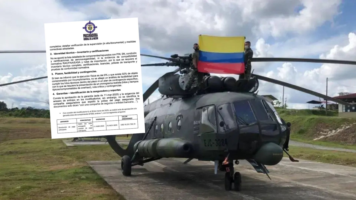 Desde febrero de 2025, dos meses después de la firma del contrato entre el Ministerio de Defensa y la estadounidense Vertol System Company INC para el mantenimiento de los helicópteros MI-17, la Procuraduría encendió las alarmas. El ente de control advirtió la ausencia de estudios previos, certificaciones, anexos técnicos, protocolos de evaluación y hasta del enlace de SharePoint con la información contractual.En los meses siguientes, y hasta la activación de la cláusula de incumplimiento por parte del Ministerio —debido a la incontrovertible baja ejecución, de apenas el 8 %, pese al pago de 16 millones de dólares de anticipo—, el Ministerio Público continuó requiriendo información y documentos, y advirtiendo a la entidad sobre los puntos críticos para evitar, como finalmente ocurrió, un riesgo de detrimento en un convenio de esta envergadura, que además impacta la operación del Ejército.Ministro de Defensa, Pedro Sánchez Foto:Sergio Acero. EL TIEMPO / CityNoticiasEl 9 de octubre, tras el inicio del proceso sancionatorio por incumplimiento, la Procuraduría Delegada Primera para la Vigilancia Preventiva de la Función Pública realizó una visita administrativa a las instalaciones del Ministerio de Defensa para examinar aspectos clave del proceso.Hizo varios reparos. En primer lugar, la insuficiencia de las justificaciones de fuerza mayor presentadas por el contratista. También reiteró la ausencia de soportes técnicos y financieros en el expediente único y la falta de un plan de contingencia frente al riesgo de incumplimiento.A esto se sumó la deficiencia en la supervisión contractual y el riesgo que representa para la capacidad operativa de la Fuerza Pública el bajo avance real del contrato, “que apenas llega al 8 %, frente al 50 % de los recursos que ya han sido desembolsados”.Los vacíos jurídicosEL TIEMPO conoció el documento en el que el Ministerio Público señala seis vacíos jurídicos que hoy ponen en inminente riesgo de pérdida 16 millones de dólares —la mitad del valor total del convenio—, girados mediante un otrosí anexado al contrato, debido además a irregularidades en la expedición de la póliza que debía cubrir ese monto en caso de incumplimiento del contratista.1. Pago anticipado – Plan de inversión y evidenciasAunque la entidad informó el monto, la fecha, el egreso y la cobertura del anticipo, no anexó el plan de inversión del contratista ni las evidencias de ejecución (órdenes de compra, facturas, pagos, comprobantes) exigidas en el requerimiento original. Por tanto, se solicita remitir el plan de inversión y los soportes contables y financieros completos, detallar la verificación realizada por la supervisión (in situ o documental) y las medidas correctivas adoptadas.2. Idoneidad técnica – Inventario y certificacionesNo se aportó la lista detallada de componentes o repuestos con P/N, SN, condición y certificaciones de aeronavegabilidad, ni la evidencia de compatibilidad normativa RAC/FAA/EASA y las rutas de importación. Se requiere, por tanto, el inventario técnico completo, las certificaciones, licencias, pólizas de transporte y pruebas de conformidad normativa.Flota de helicópteros MI-17. Foto:Archivo particular3. Plazos, factibilidad y contingenciasSi bien se informó que la ejecución física alcanza el 8 % y que existe un 92 % del objeto comprometido por incumplimientos, no se allegó un análisis de factibilidad para cumplir los hitos técnicos dentro del plazo ni un plan de contingencia específico. En consecuencia, se requiere la presentación de un cronograma realista (hitos y tiempos típicos o comprometidos de overhaul), la ruta crítica y las contingencias previstas.4. Garantías – Identificación de la aseguradora y soportesConsta la aprobación de la garantía (acta del 11 de marzo de 2025) y la exigencia del amparo de anticipo en los modificatorios; sin embargo, no se identifica la compañía aseguradora que expidió la póliza del pago asegurado (los documentos solo mencionan “una compañía de seguros o entidad bancaria…”).(La Procuraduría requirió, además de informar el nombre de la aseguradora, anexar certificación de vigencia expedida por la aseguradora y constancia de prima pagada e indicar si existe pronunciamiento o aceptación de cobertura frente a eventuales siniestros, dos aspectos que también han estado en tela de juicio).5. Logística internacional – LicenciasLa entidad informó la ausencia de licencias para la exportación o ingreso de aeronaves, motores y componentes, razón por la cual no se han realizado despachos al exterior. En consecuencia, se solicita el estado detallado de los trámites de licencias (autoridad, fechas, radicados, obstáculos y plan de cierre) y las alternativas adoptadas.6. Alcance sancionatorio (caducidad) – Comunicación al contratistaNo se allegó y por ende se solicita copia de la comunicación formal mediante la cual se informó al contratista el alcance de las medidas sancionatorias, incluyendo el escenario de caducidad contractual, así como las actuaciones adelantadas para garantizar el debido proceso. “Todo ello con el fin de proteger los recursos públicos y salvaguardar la seguridad de los colombianos mediante el mantenimiento de las aeronaves necesarias para garantizar la continuidad del servicio. Solo de esta manera la entidad asegura la defensa de los recursos públicos, la continuidad del servicio estratégico de mantenimiento de la flota MI-17 y el cumplimiento de los fines esenciales del Estado en materia de defensa y seguridad nacional”, dice el documento. El futuro de la reforma de la salud Foto:Sara Valentina Quevedo DelgadoRedacción Justicia
